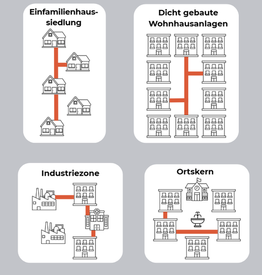 Das Projekt zielt darauf ab, innovative Organisations- und Umsetzungsmodelle für Anergienetze zu entwickeln, die in unterschiedlichen bestehenden Siedlungs- und Gebäudetypologien angewendet werden können.